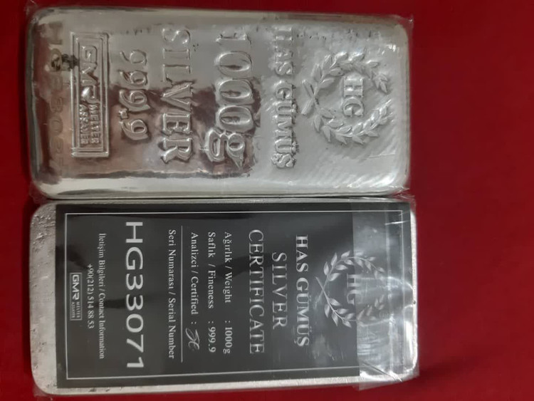 شمش نقره 1000گرمی ترکیه 999/9هاس گوموش ضمانت اصل به علت نوسانات ارز و اونس جهانی برای اطلاع از قیمت تماس بگیرید09129415072
