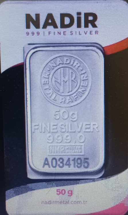 شمش نقره ۵۰ گرمی Nadir ترکیه ضمانت اصل با سرتیفیکیت